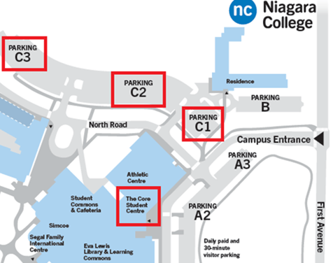 - Please enter through the Athletic Centre Entrance and proceed to the Core Student Centre.